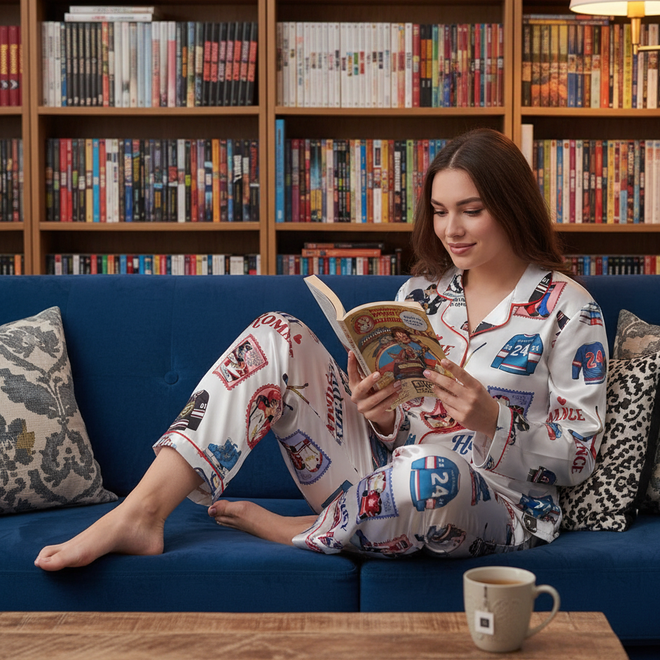 Inspired by iconic enemies-to-lovers hockey romance vibes, this pajama set is perfect for late-night reading, binge-watching, and sitting quietly with all the feelings after the story ends.