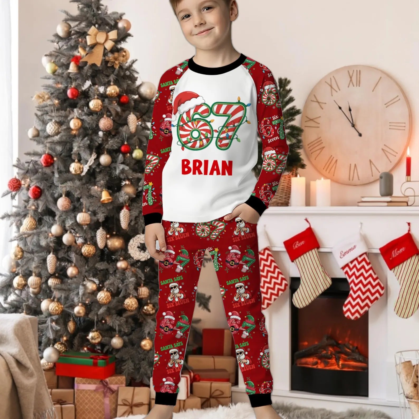 These Personalized Funny 67 Meme Kids Pajamas turn a viral TikTok joke into the cutest holiday look your child will ever wear.