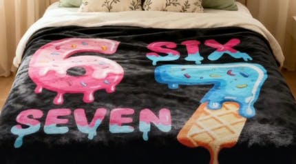 This blanket is hilarious and adorable at the same time! The ice cream drip with the 6–7 meme is printed perfectly. My son laughed so hard when he opened it.