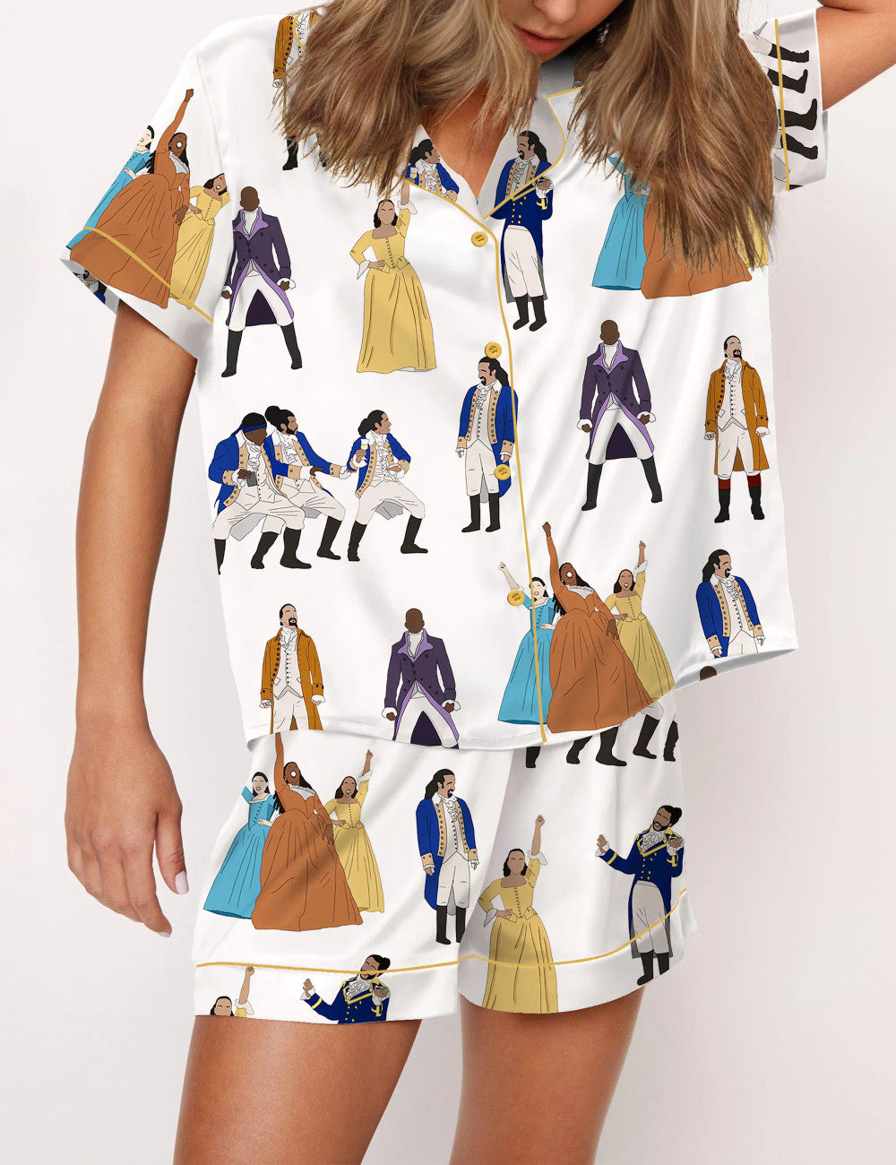 Feel the elegance, power, and rhythm of the stage — even in your dreams. These silky satin pajamas bring the timeless energy of Hamilton to your cozy nights, blending comfort with a touch of Broadway brilliance.