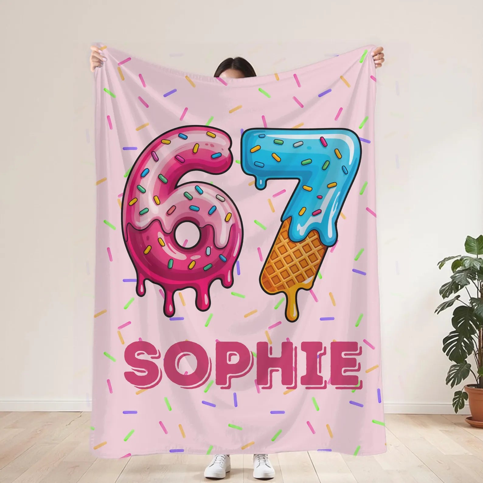Personalized Kids 67 Meme Blanket – Custom Name Funny Cozy Throw for Boys & Girls