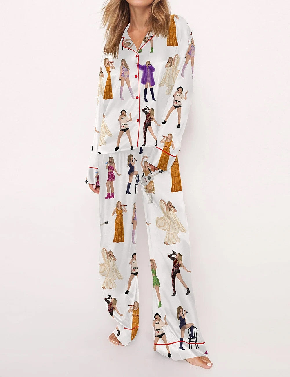 Step into your Swifttie era in silky comfort! These satin pajamas let you relive the sparkle, lyrics, and memories of your favorite tour — turning every night into your own cozy concert.