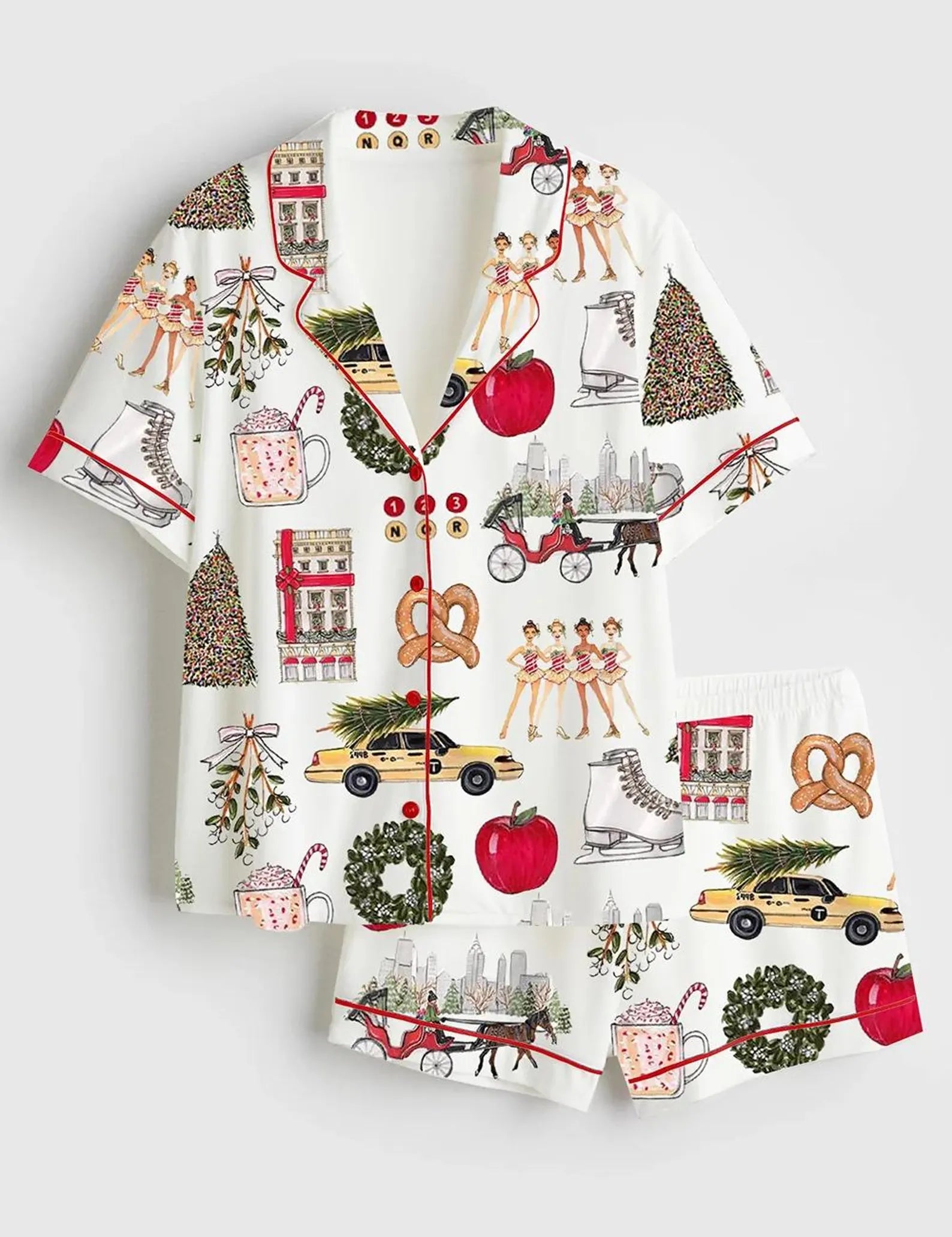Whether you’re enjoying cozy nights at home, celebrating Christmas Eve, or gifting someone special, this pajama set brings festive cheer with a touch of city glamour.