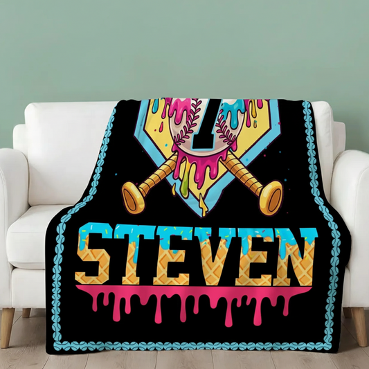 Personalized Ice Cream Drip Baseball Blanket – Custom Name Kids Baseball Throw, Player Gift & Birthday Gift for Boys